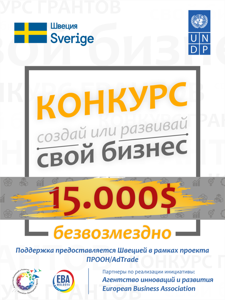 Швеция и Программа развития Организации Объединенных Наций посредством проекта «Развитие экспортного потенциала на берегах Днестра» (AdTrade) оказывают помощь в создании или развитии малых и средних предприятий на обоих берегах Днестра. Предприниматели могут получить помощь для покупки товаров и услуг на сумму до 15 000 долларов США. 20 отобранных предпринимателей также будут получать индивидуальное руководство и …